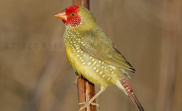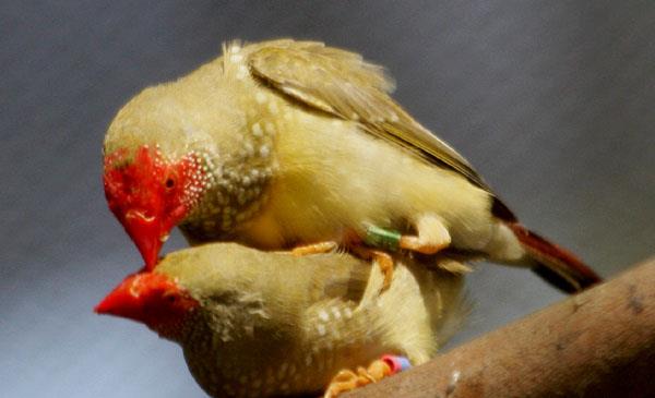 星雀:別名星文鳥,為雀形目、梅花雀科、星雀屬鳥類,原產(chǎn)于大洋洲澳大利亞、新西蘭、塔斯馬尼亞及其附近的島嶼。棲息于干燥的稀樹草原。其棲息地已收到一定威脅,由于過度放牧,使得它們賴以生存的草籽大大的減少,籠鳥行業(yè)也使其野外種群數(shù)量大幅減少。