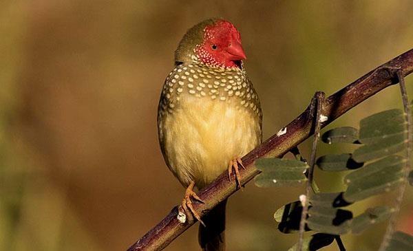 是國(guó)外比較受歡迎的籠養(yǎng)寵物鳥,國(guó)內(nèi)比較少見。體羽豆綠色至灰色,面頰紅色,渾身密布珍珠一般的白色小圓斑。雄鳥臉頰紅色斑塊部分寬而明顯,雌鳥斑塊小而且顏色淡。