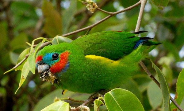雙眼無花果鸚鵡:別名紅臉果鸚鵡,為鸚形目、鸚鵡科、無花果鸚鵡屬鳥類,原產(chǎn)于亞洲印尼的新幾內(nèi)亞與巴布亞新幾內(nèi)亞及其周圍的小島,澳大利亞東北部也有其族群。棲息于中低海拔的雨林、森林邊緣地區(qū)、干燥森林、溪河旁的森林、開闊的尤加利樹林地等地,在澳洲也會出現(xiàn)在公園、灌木叢、農(nóng)作物區(qū)及紅樹林林地等地區(qū)。1866年命名,共8個亞種。