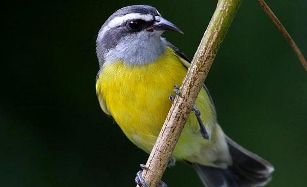 波多黎各國鳥,體型較小,眼部上方有一條非常明顯的白色眉紋,背部羽色藍灰,胸部羽毛艷黃,對比十分強烈。喙部明顯的向下彎曲,喜食各種水果及各種小型昆蟲。