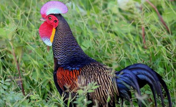 綠原雞:別名綠領(lǐng)原雞,為雞形目、雉科、原雞屬鳥類,原產(chǎn)于亞洲印尼,包括爪哇島、巴厘島、科莫多島、龍目島、松巴哇島和周圍的島嶼。棲息于沿海地區(qū)和半干旱的巖石區(qū),足夠接近水源,如沼澤地、紅樹林、沿海海灘、稻田。1798年命名,無亞種。