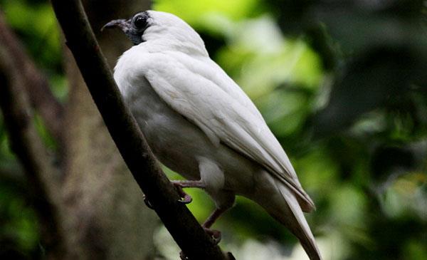 巴拉圭國(guó)鳥(niǎo),雄鳥(niǎo)的羽毛呈雪白色,有光澤。裸眼,喉嚨和下頸部沒(méi)有羽毛,呈亮藍(lán)色。鳥(niǎo)喙適中而偏垂,先端具鉤。腿較短,尾中等,方形。雄鳥(niǎo)為了吸引雌鳥(niǎo)交配,會(huì)發(fā)出像錘子敲鐘的聲音,因此得名。