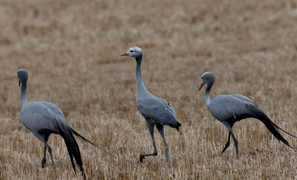 藍鶴:別名,為鶴形目、鶴科、蓑羽鶴屬鳥類,原產于非洲南非特有物種,唯獨有一個小分支,遠離它們南方的“表親”,北上棲息在納米比亞的埃托沙鹽沼地。藍鶴也會季節(jié)性地跨越國界,飛到鄰近的萊索托、斯威士蘭、博茨瓦納,甚至津巴布韋等國家,偶爾還會在這些地方筑巢。不過,可以肯定的是,99%的藍鶴是以南非為家的。