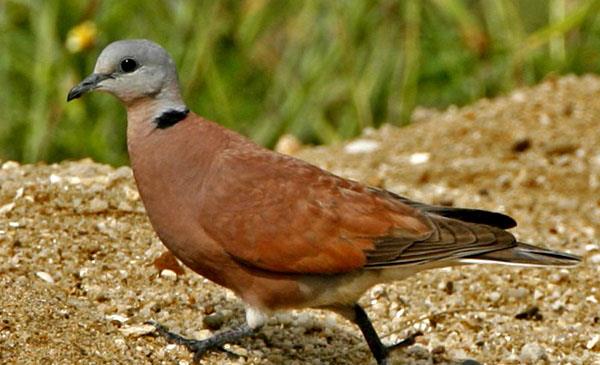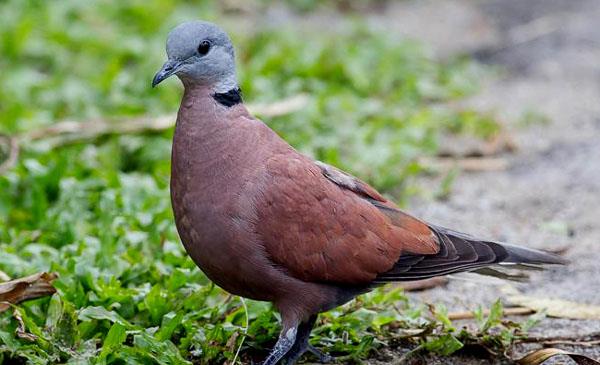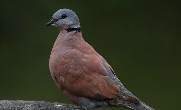 鳩鴿科形較小的品種,也是斑鳩屬中動(dòng)作較為敏捷的品種。飛行甚快,常發(fā)出“呼呼”的振翅聲。雄鳥頭部至后頸呈藍(lán)灰色,頸后有一條黑色領(lǐng)環(huán),延伸至頸兩側(cè)。