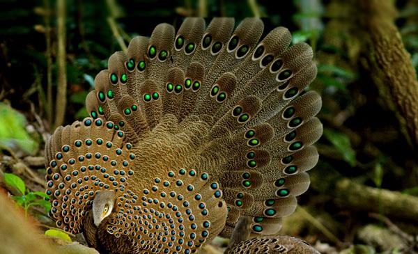 緬甸國(guó)鳥(niǎo),由于羽色絢爛,形態(tài)特殊,肉質(zhì)鮮美,可人工飼養(yǎng)合理開(kāi)發(fā)利用。上背、翅膀和尾羽端部具紫色或翠綠色金屬光澤的絢麗的眼狀斑,極為醒目,與孔雀尾羽的形狀、功能非常相似,只小了很多。