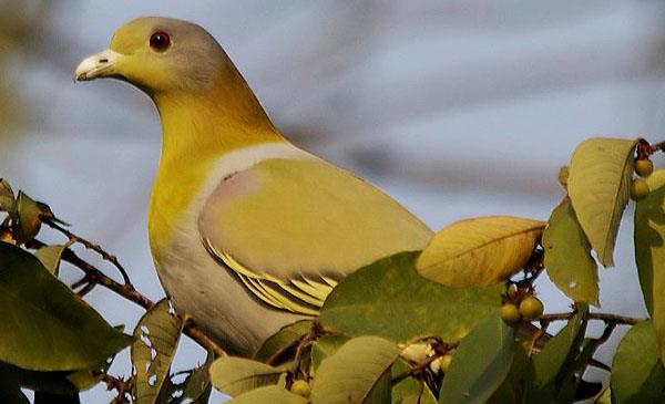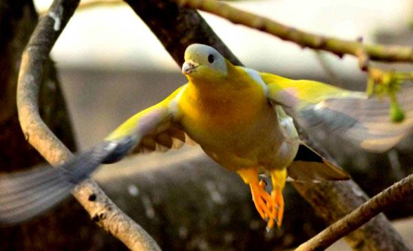 黃腳綠鳩:別名普通綠鳩,為鴿形目、鳩鴿科、綠鳩屬鳥類,原產(chǎn)于亞洲印度次大陸及中國(guó)的西南地區(qū),包括孟加拉、不丹、柬埔寨、印度、老撾、緬甸、尼泊爾、巴基斯坦、斯里蘭卡、泰國(guó)、越南以及中國(guó)的東南沿海地區(qū)。棲息于丘陵和山腳平原等海拔較低的常綠闊葉林及灌叢中,尤其是榕樹等野果豐富的樹上,有時(shí)也出現(xiàn)于林緣的耕地上。1790年命名,共5個(gè)亞種。