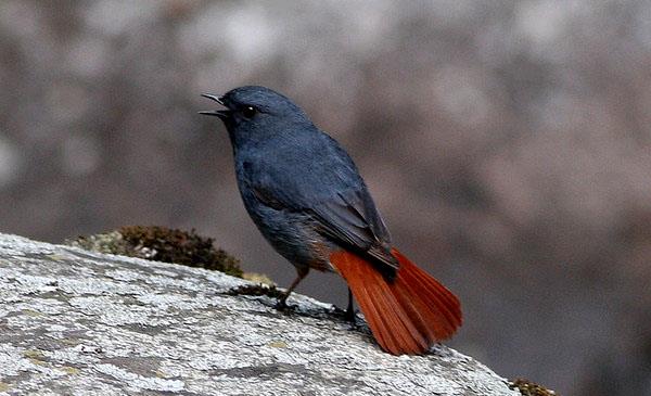 紅尾水鴝:別名石燕_鉛色水_藍(lán)石青兒_溪紅尾鴝_溪紅色鴝_鉛色紅尾鴝,為雀形目、鹟科、水鴝屬鳥類,原產(chǎn)于亞洲南部,中國、阿富汗、巴基斯坦、尼泊爾、錫金、不丹、印度、孟加拉、緬甸、越南、泰國等地。棲息于山地溪流與河谷沿岸,尤以多石的林間或林緣地帶的溪流沿岸較常見,也出現(xiàn)于平原河谷和溪流,偶爾也見于湖泊、水庫、水塘岸邊。1831年命名,共2個(gè)亞種。