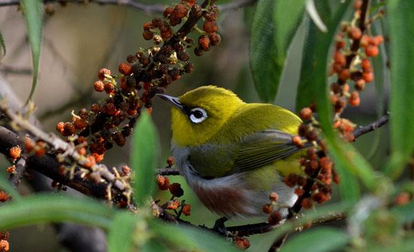 紅肋繡眼鳥:別名白眼兒鳥_粉眼兒鳥_褐色肋繡眼鳥_紅肋白目眶鳥,為雀形目、繡眼鳥科、繡眼鳥屬鳥類,原產(chǎn)于亞洲東部及南部,中國、俄羅斯、朝鮮、韓國、柬埔寨、老撾、緬甸、泰國、越南,常見于海拔1000m以上原始林及次生林。繁殖于中國東北,越冬往南遷徙。1863年命名。