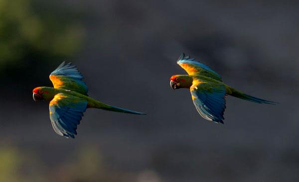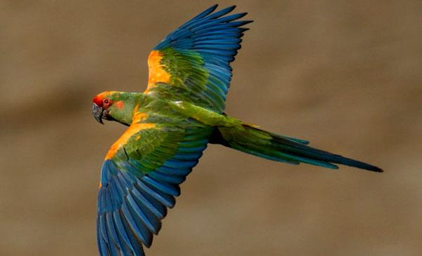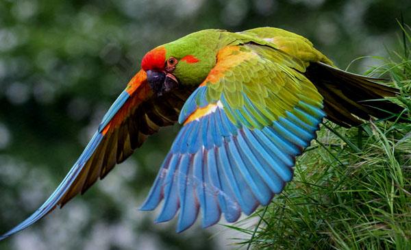 紅額金剛鸚鵡:別名,為鸚形目、鸚鵡科、金剛鸚鵡屬鳥類,原產(chǎn)于南美洲玻利維亞特有品種,主要分布于大里奧斯、米斯克、堅而皮科馬約谷。喜棲息于半干燥的山谷、并且以山谷附近森林的植被為活動范圍,也常常喜歡飛到這些山谷附近的農(nóng)田去覓食。1847年命名,無亞種。