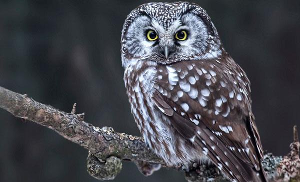 鬼鸮:別名渾斑古_(tái)小貓頭鷹,為鸮形目、鴟鸮科、鬼鸮屬鳥(niǎo)類,原產(chǎn)于亞洲中部、歐洲、北美洲,包括俄羅斯、蒙古、日本、美國(guó)和加拿大等地,中國(guó)分布于東北黑龍江、甘肅、新疆、四川等地。主要棲息于針葉林和針闊葉混交林,尤其是以松、樺、白楊為主的混交林。1758年命名,共6個(gè)亞種。