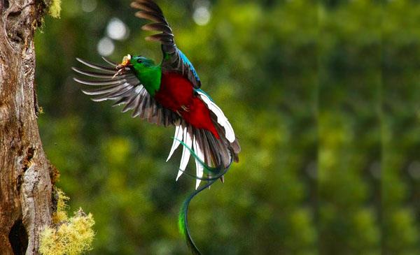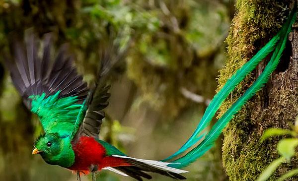 鳳尾綠咬鵑:別名自由鳥_大咬鵑_格查爾鳥_天堂大麗鵑_愛沙爾克鳥_阿茲特克鳥,為咬鵑目、咬鵑科、綠咬鵑屬鳥類,原產(chǎn)于北美洲墨西哥、尼加拉瓜、哥斯達(dá)黎加和巴拿馬等地。棲息于海拔900-3200m的熱帶叢林、原始潮濕的山地云霧林、茂密植被的溝壑和懸崖,森林邊緣。1832年命名,共2個(gè)亞種?!度A盛頓公約》的瀕危物種。在古代瑪雅和阿芝臺(tái)克文明中,只有國(guó)王和高級(jí)祭司才佩戴有它長(zhǎng)達(dá)一公分翡翠般的尾羽。傳說,西班牙殖民者入侵之后便開始沉默,當(dāng)危地馬拉解放之后,它們又開始?xì)g唱了。