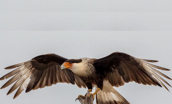 鳳頭卡拉鷹:別名鳳頭巨隼_北美鳳頭卡拉鷹,為隼形目、隼科、鳳頭巨隼屬鳥類,原產(chǎn)于北美洲大陸,從墨西哥北部的下加利福尼亞州、亞利桑那州、得克薩斯州和路易斯安那州,延伸至整個中美洲和秘魯及亞馬遜河流域。最典型的棲息地是干燥草原、灌叢、牧場或沙漠的混合區(qū)域。育種繁殖選擇樹木繁茂的地區(qū),或低地或山坡上的灌木叢內(nèi)。1784年命名,無亞種。棲息密度每只鷹占5-40公頃的區(qū)域。每個鷹覆蓋面積超過8公里,直徑約55平方千米。