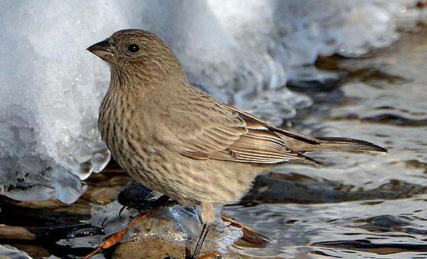 雌性成鳥上體從頭至短的尾上覆羽,包括肩羽和小、中覆羽黃褐色,具暗色縱紋。長(zhǎng)的尾上覆羽和尾羽褐色,外側(cè)一對(duì)尾羽具窄的白邊,其他尾羽具淡褐色狹邊。
