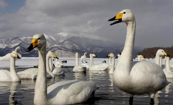 芬蘭國鳥,世界上羽毛最多的鳥類、飛得最高的鳥類,遷徙時能飛越世界屋脊珠穆朗瑪峰,最高飛行高度可達9000m以上。體形巨大,羽色潔白,游泳緩慢從容,姿態(tài)優(yōu)雅。她的美麗曾一度成為人們瘋狂捕獵對象。除非迫不得已,一般很少起飛。