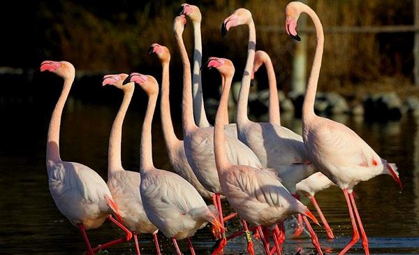 性機(jī)警、溫和,善游泳,但很少到深水域,飛行慢而平穩(wěn)。結(jié)成數(shù)十至上百只的大群,有時甚至成千上萬只,一個挨一個緊密地排列著,與雁類相似的叫聲此起彼伏,震耳欲聾,遠(yuǎn)遠(yuǎn)望去,紅腿如林,似蜘蛛一般,一條條長頸也頻頻交替蠕動,十分壯觀。飛行時頸伸直。如果乘飛機(jī)向下觀看,遍地通紅,綿延好幾公里,就象一塊巨大的紅地毯,又宛如一片在泥沼原野上沸騰著的紅色波濤,一派生機(jī)勃勃的景象,令人心曠神怡。