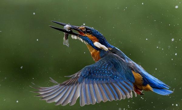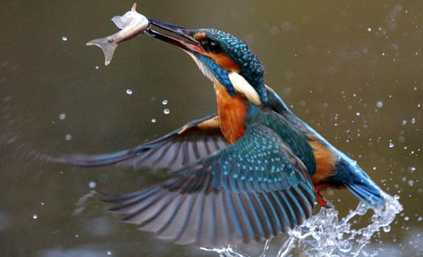 是最常見,人們最熟悉的翠鳥品種,外形與斑頭大翠鳥相似,但體型較小,體色較淡。翠鳥扎入水中后,還能保持極佳的視力,因為它的眼睛進入水中后,能迅速調(diào)整水中因為光線造成的視角折射反差,所以捕魚本領(lǐng)非常很強。