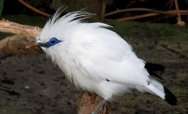 八哥系列鳥類中,顏值最高、最美麗的品種。周身潔白、外形俊朗、羽冠發(fā)達,眼睛四周和面部裸出,裸露部分為藍色。冠羽雖不像一些羽冠發(fā)達的鳥類復(fù)雜多變,卻十分有特點。求偶時雄鳥會豎起冠羽,不斷地上下擺動頭部。