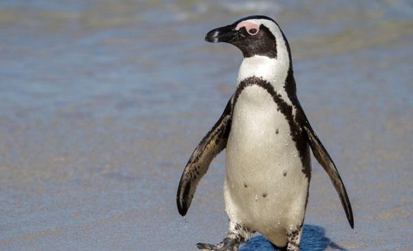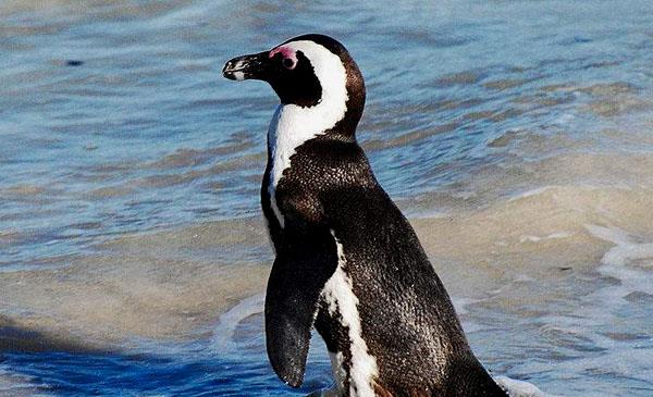 斑嘴環(huán)企鵝:別名非洲企鵝_黑腳企鵝_公驢企鵝,為企鵝目、企鵝科、環(huán)企鵝屬鳥類,原產(chǎn)于非洲最南端海岸及周邊島嶼,野生于海岸及40km以內(nèi)區(qū)域。1758年命名。它在水中的游速可達(dá)20km/h,每次旅行可以游30-70km。白天大部分時(shí)間在水里覓食,夜間聚集在岸邊。繁殖期會(huì)向內(nèi)陸移動(dòng)一千米以尋找繁殖地。它眼睛上有獨(dú)特的腺體,在炎熱的條件下,會(huì)變成明亮的粉紅色,這是因?yàn)轶w溫上升,體內(nèi)會(huì)有較多血液流經(jīng)這個(gè)腺體,從而降溫。2018年被《世界自然保護(hù)聯(lián)盟瀕危物種紅色名錄》列入瀕危物種。