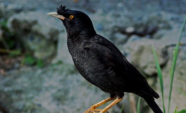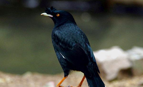 頭體長22-28cm,重78-150g,嘴峰1.6-2.6cm,翅1.1-1.5cm,尾0.6-0.9cm。外形大小和家八哥相似,通體黑色,前額有長而豎直的羽簇,有如冠狀,翅具白色翅斑,飛翔時(shí)尤為明顯。尾羽和尾下覆羽具白色端斑。嘴乳黃色,腳黃色。俗話說:人貴有志,鳥貴羽麗。羽毛是鳥的時(shí)裝和保護(hù)層,體壯的八哥必然是羽毛平整有紋,毛色黑亮并帶有金屬光澤。健康的八哥雙眼黑亮有神,身軀較大,站立姿態(tài)優(yōu)美,雙腳抓棲杠有力,食欲旺盛,喜歡鳴唱。