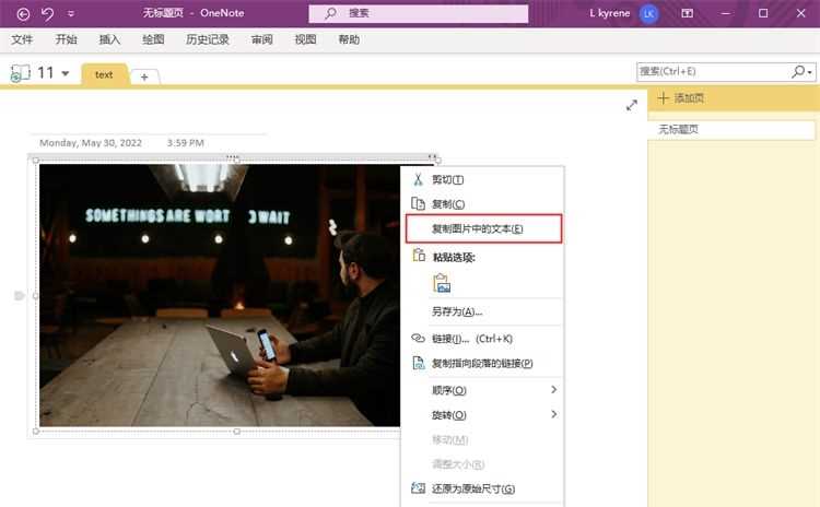 打開軟件——新建一個(gè)筆記本頁——點(diǎn)擊“插入”選擇插入“圖片”——上傳圖片文件——鼠標(biāo)移動(dòng)到圖片上——右鍵選擇“復(fù)制圖片中的文本”功能即可。