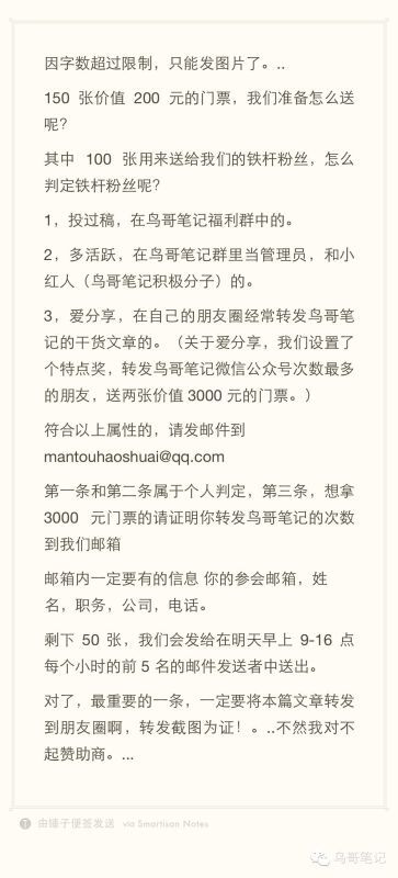 正題來了:為了讓鳥哥筆記粉絲們能夠與我們一起見證這場世界盛會,我們特別準備了150張門票送給鳥哥筆記的鐵桿粉絲和幸運的粉絲們(怎么認定你是不是我們鐵桿粉絲呢?怎么才能夠得到GMIC票呢?請在后臺回復(fù)“門票”,可知。)