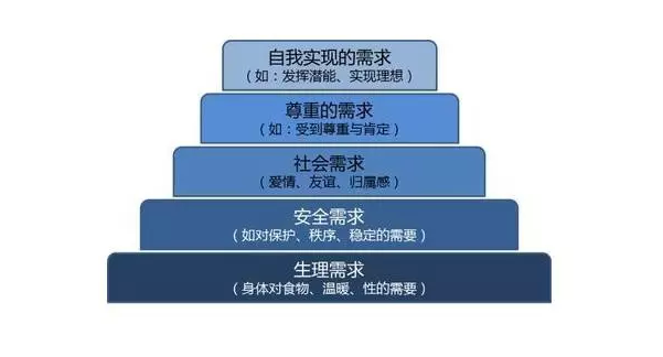 先從目標人群的心理需求上來講,根據(jù)人本主義理論的馬斯洛需求分析,人類的需求從低到高按層次分為:生理需求、安全需求、社交需求、尊重需求和自我實現(xiàn)需求。