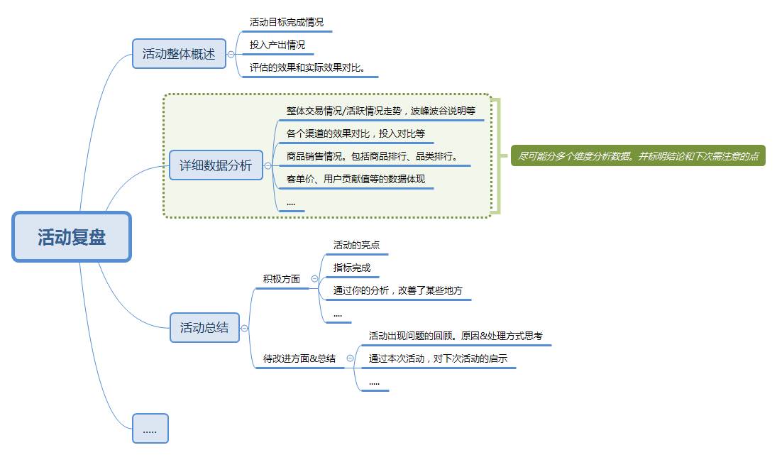 以下我整理的活動(dòng)復(fù)盤大致需要考慮到的部分,可根據(jù)具體情況做加減法。
