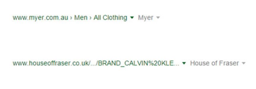 當(dāng)然,第一個(gè)——很明顯,點(diǎn)擊鏈接后,你將直接登陸一個(gè)電子商務(wù)網(wǎng)站的男裝區(qū)。在另一方面,第二網(wǎng)址看起來(lái)像是帶你進(jìn)入到一個(gè)品牌頁(yè)面——并不一定能夠提供你要找的襯衣。(第二個(gè)網(wǎng)址并不能說(shuō)明他們是否銷售男士或女士的襯衣)