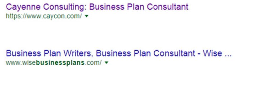 假設(shè)你正在搜索“商業(yè)計(jì)劃顧問(wèn)”,而你所看到的基本上都是意味著相同的內(nèi)容,只是帶有不同關(guān)鍵字的標(biāo)題。現(xiàn)在,將其與另一個(gè)加載正確關(guān)鍵字的頁(yè)面,該頁(yè)面能夠取悅潛在購(gòu)買者和搜索引擎。你會(huì)點(diǎn)擊哪個(gè)頁(yè)面標(biāo)題呢?