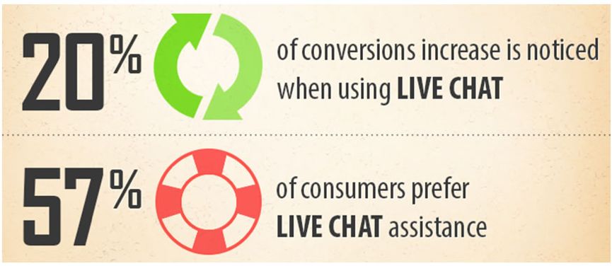 *圖釋:當(dāng)使用在線聊天時(shí)會(huì)帶來(lái)20%的轉(zhuǎn)化率增長(zhǎng);57%的消費(fèi)者更喜歡在線聊天服務(wù)