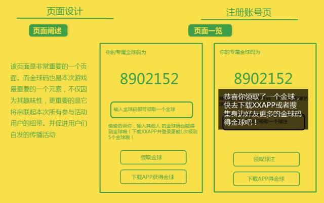 所以我在這次活動(dòng)里,引入“金球碼”的概念,你輸入別人的金球碼,別人輸入你的金球碼,都會(huì)得到更多的金球,