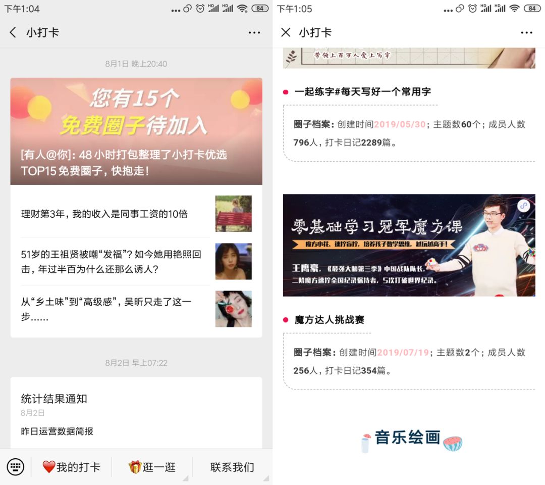 于是我專門(mén)花時(shí)間研究了下,最終成功申請(qǐng)到了小打卡的資源位,圈子上了小打卡公眾號(hào)的頭條,入選了前15個(gè)免費(fèi)優(yōu)質(zhì)圈子的榜單,最終小打卡給我們帶來(lái)200+新成員。