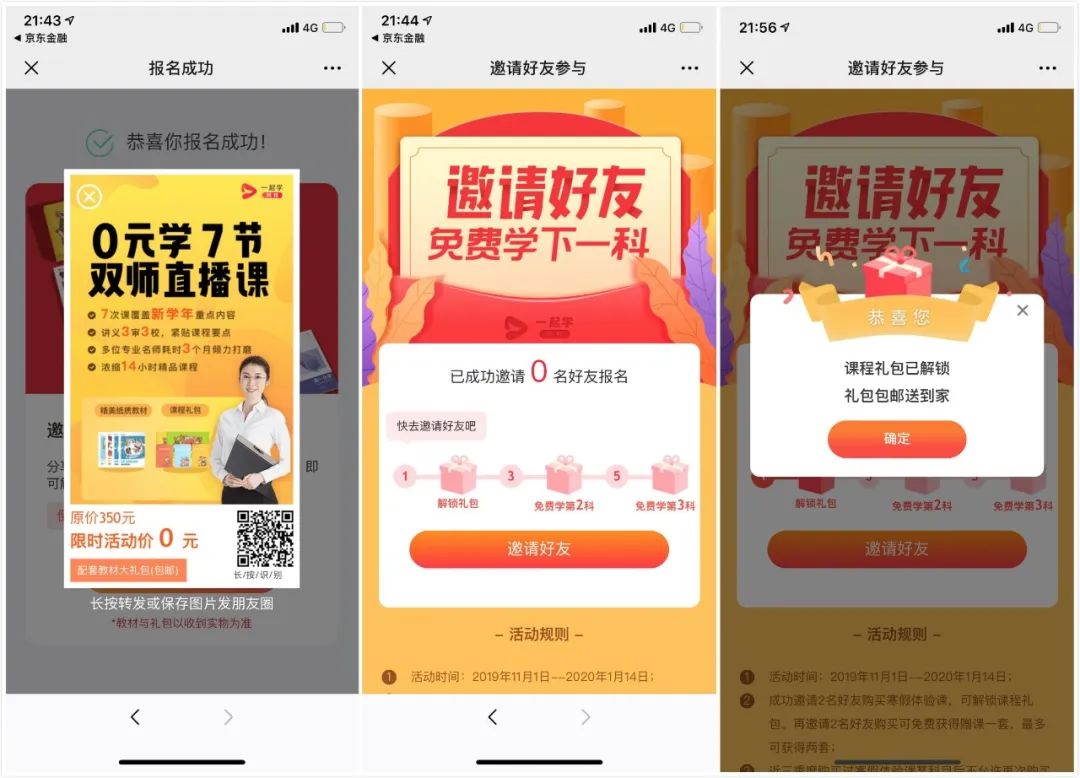以上三項(xiàng)關(guān)鍵行為都可以通過AB測試不斷去調(diào)試,找到其中的平衡點(diǎn)。比如邀請獎(jiǎng)勵(lì)機(jī)制,應(yīng)該設(shè)置為多少位好友;海報(bào)的文案、突出的利益點(diǎn)應(yīng)該是什么才能提高打開率;落地頁的利益點(diǎn)是有價(jià)值的課程服務(wù)還是精美的實(shí)物禮品。這些都可以通過測試去積累數(shù)據(jù),從而優(yōu)化活動的轉(zhuǎn)化率。