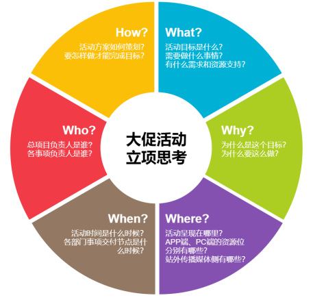 在做一場大促活動前,我們利用5W1H分析法進(jìn)行事項剖析。