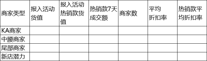 (1)貨品總貨值是否能夠完成KPI,平均單個商家備貨款數(shù)和深度是多少;