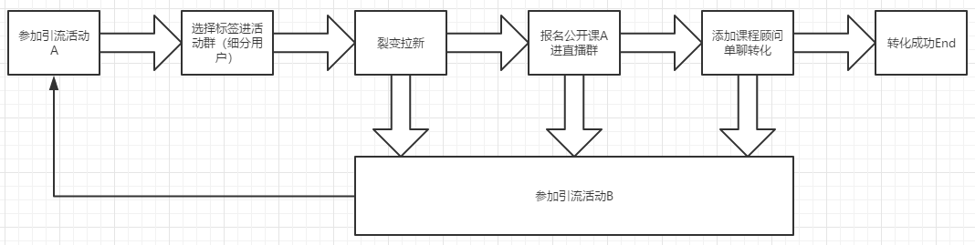 引流活動在整個轉(zhuǎn)化閉路中扮演著激活老用戶,重新洗牌和獲取新流量的作用,是整條鏈路跑起來的引擎發(fā)動機。 圖2-轉(zhuǎn)化閉路