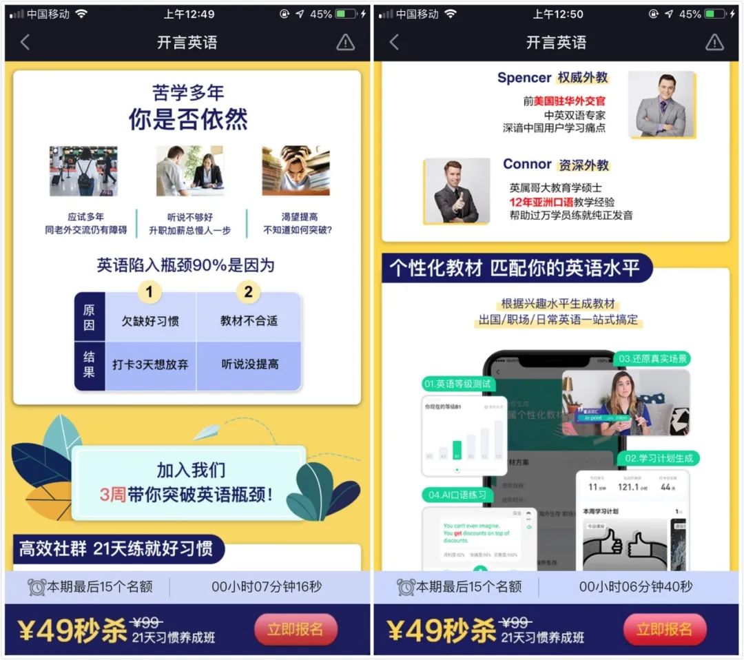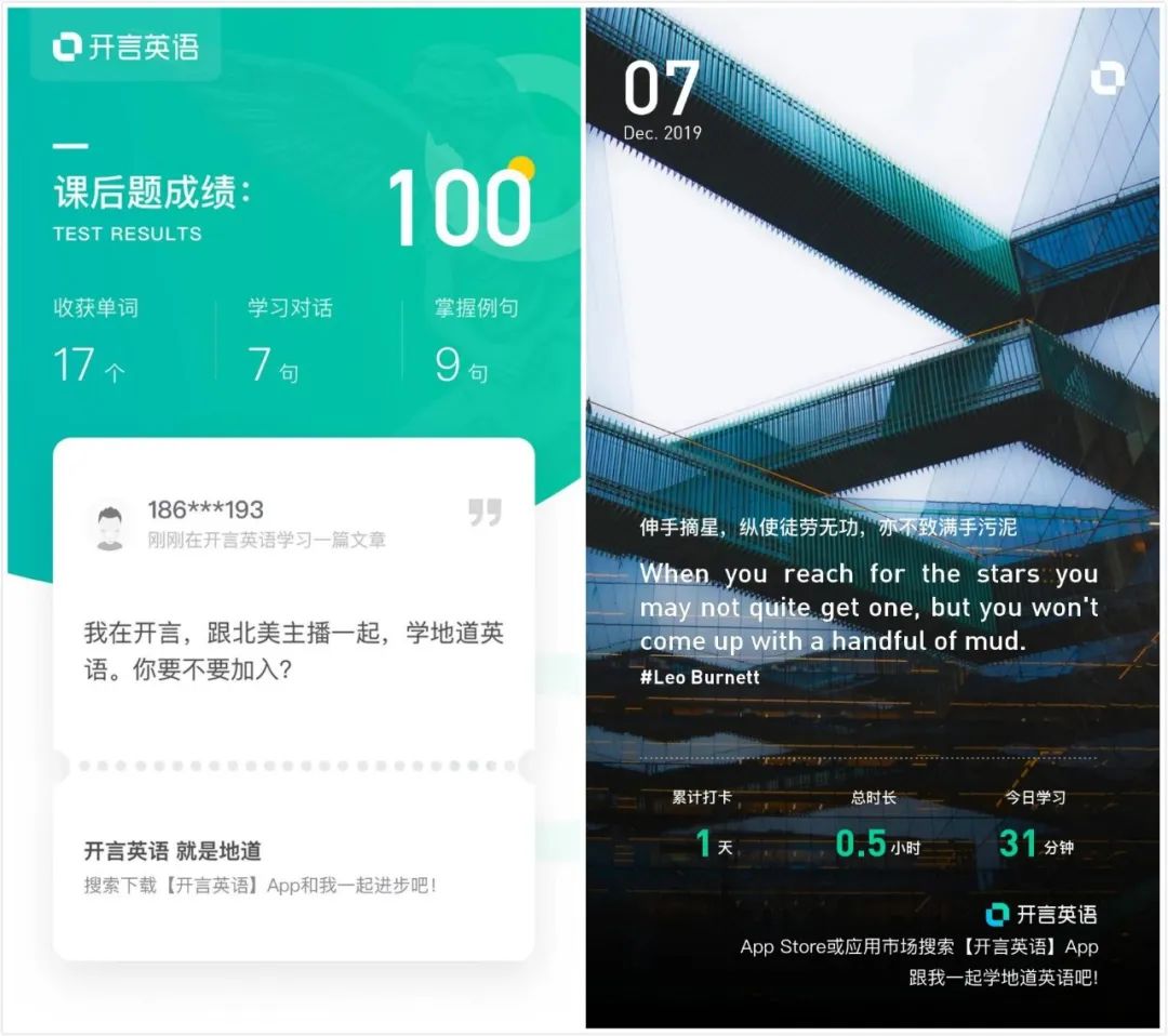 1.裂變玩不了,業(yè)績依舊要增長。微信新規(guī)越來越嚴(yán)的情況下,看到有一些童鞋交流增長難做,但是改變不了環(huán)境的我們,只能選擇適應(yīng)。回歸用戶服務(wù)上,不斷追求服務(wù)細(xì)致化來獲取用戶依賴更為硬道理。(我是開言英語新用戶,對(duì)它非常有好感)