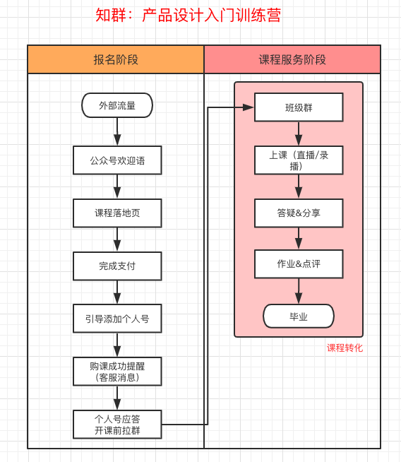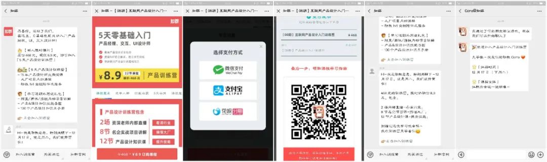 本案例的用戶購買流程比較簡單,進(jìn)入公眾號菜單欄(或關(guān)注消息)到達(dá)課程詳情頁即可購買,不需要其他的復(fù)雜操作,對用戶比較友好。流程越少,越能減少每個(gè)漏斗層級的流失,從而提升整體的轉(zhuǎn)化率。