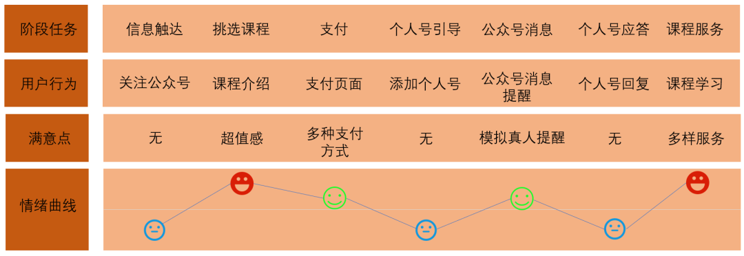 用戶體驗(yàn)地圖是定位和描述一項(xiàng)完整服務(wù)過程中,每個(gè)階段的服務(wù)體驗(yàn)情況,并利用圖形化方式記錄/整理/表現(xiàn),了解每個(gè)環(huán)節(jié)用戶的行為、判斷用戶情緒,從而找到流程中用戶的爽點(diǎn)和痛點(diǎn),打造更完美的用戶體驗(yàn)。