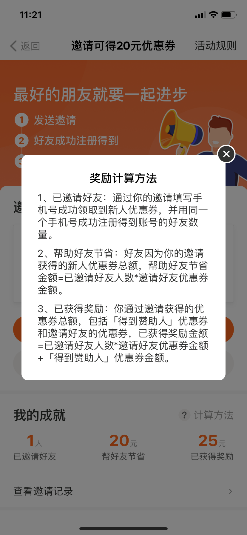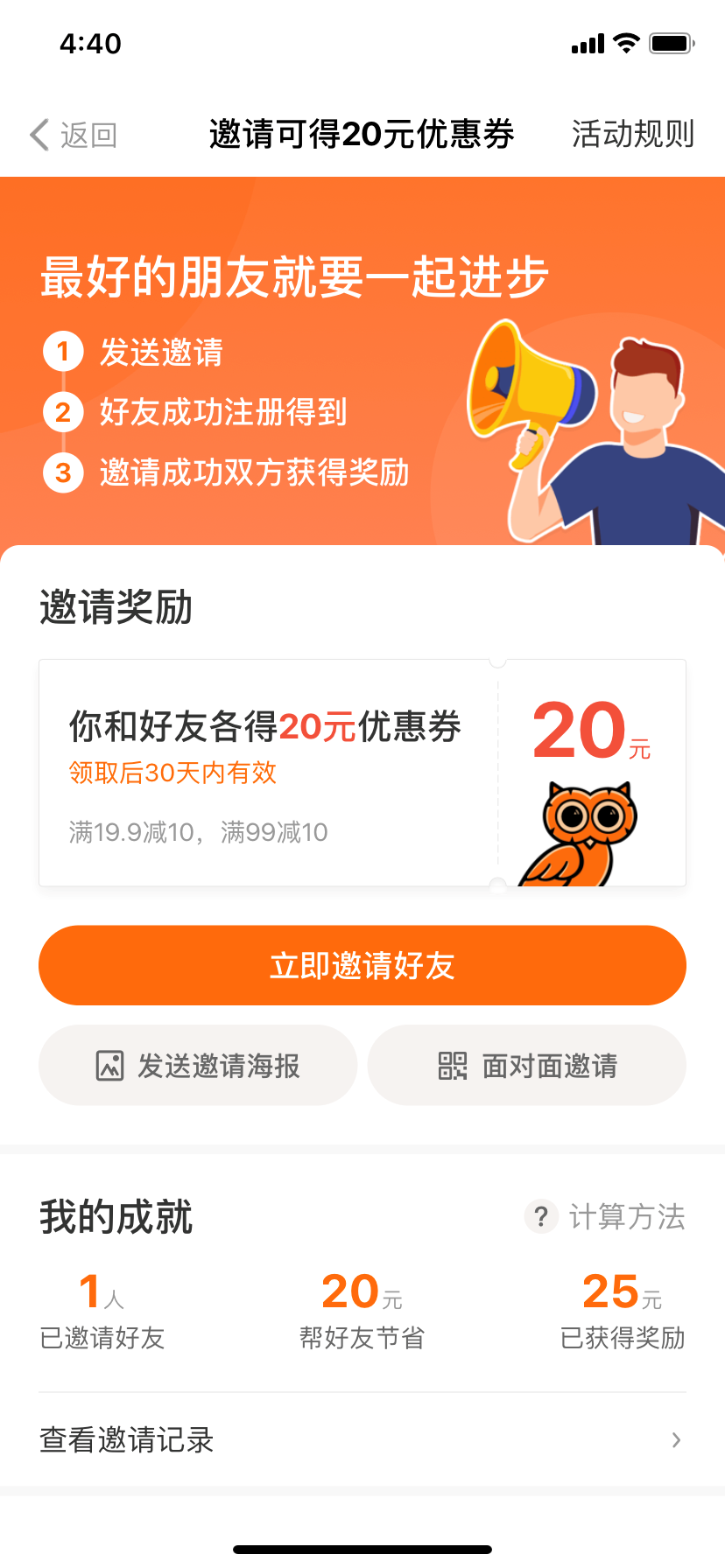 邀請(qǐng)獎(jiǎng)勵(lì):你和好友各得20元優(yōu)惠券