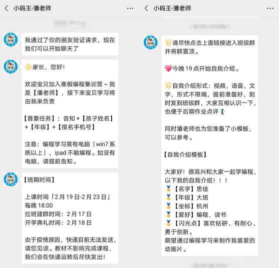 (2)添加班主任微信后,會進行用戶信息的收集和課程時間的預告。