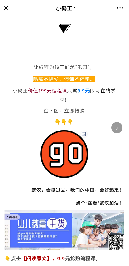 小碼王這次的9.9元課程只借助了自有公眾號和公眾號軟文投放的方式進行了推送。