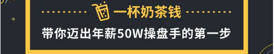 而“帶你邁出年薪50W操盤手的第一步”也表達出,本次課程并不能幫你成為操盤手,而是邁出操盤手的第一步;眾所周知,第一步往往是最難的,所以三節(jié)課抓到的這個小小的概念“第一步”,也是十分的巧妙;同時,“年薪50W操盤手”也正好匹配了足夠精準(zhǔn)的目標(biāo)用戶,方便后續(xù)做高價課的轉(zhuǎn)化;