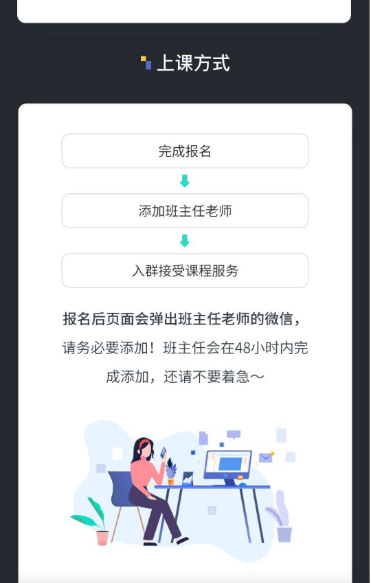 落地頁將報名課程的必經(jīng)步驟:點擊“馬上搶”按鈕始終固定在頁面下方,提高用戶完成操作的流暢性,防止用戶注意力分散,從而流失;