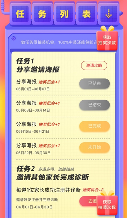 任務(wù)2,邀請(qǐng)新用戶注冊(cè)并診斷,每次抽獎(jiǎng)機(jī)會(huì)+2,但是不限次數(shù)。