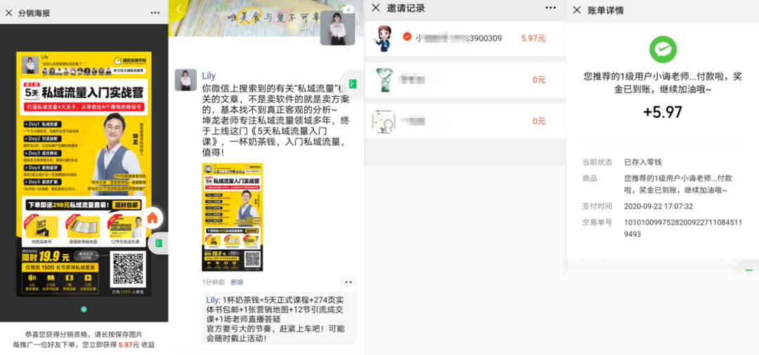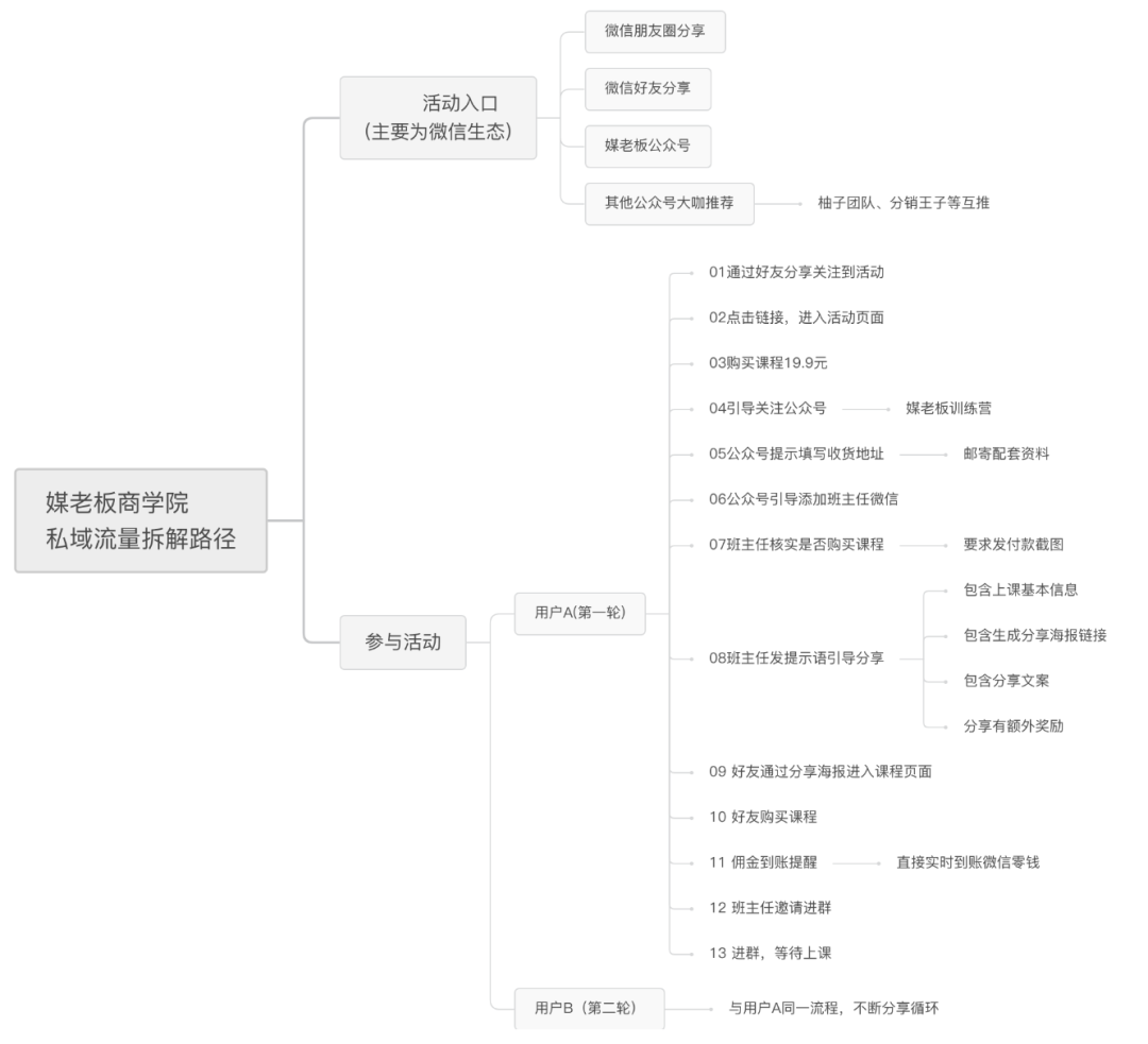 媒老板主要輸出的內(nèi)容是新媒體營銷,打造爆款公眾號,微信號吸粉,基本走的是流量裂變路線,大部分活動采用分銷的模式進行流量裂變和成交。