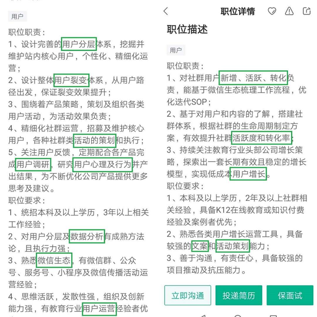 所以不必糾結于一個崗位的名稱是啥,可能同一個崗位在A公司叫用戶運營。在B公司又叫社群運營。每家公司的業(yè)務產(chǎn)品各不同,關注它具體的崗位職責就好了。