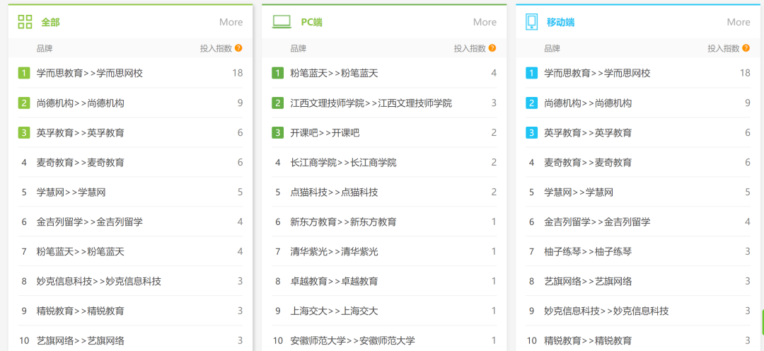 作業(yè)幫未出現(xiàn)在廣告投放排行榜之上