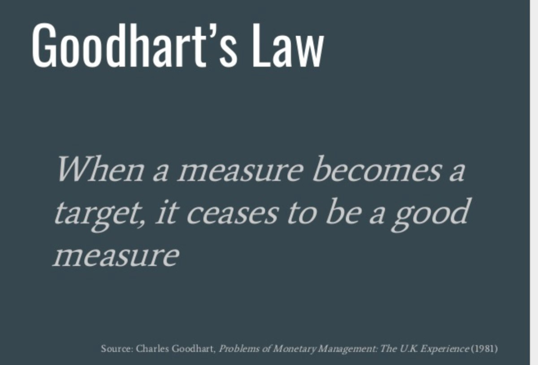 最終,這條定律就被簡(jiǎn)化成了:當(dāng)一項(xiàng)措施成為目標(biāo)時(shí),它就不再是一項(xiàng)好措施。