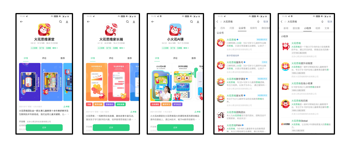 APP流量:火花思維家長端APP、火花思維課堂APP、小火花AI課APP